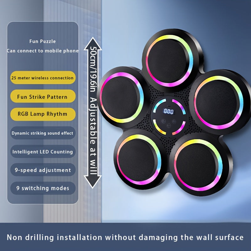 1pc BABONA Wireless Wall Mounted Intelligent Music Boxing Machine With LED Colorful Lights, USB Charging, 3D Sound, Intelligent Boxing Machine With Boxing Gloves, Music Synchronization, LED Counting System, ABS Material, Gift