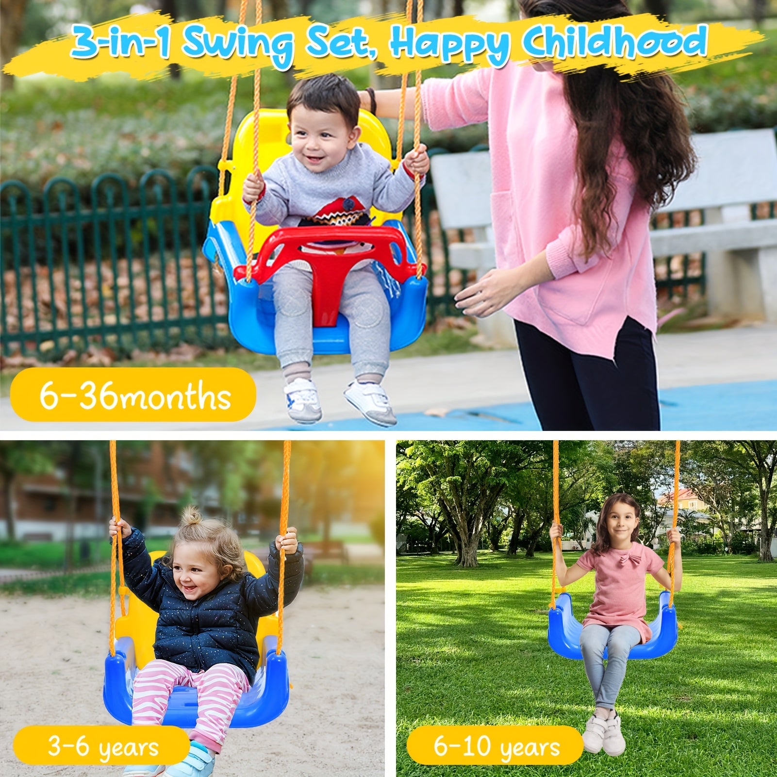 3 In 1 Kids Swing Seat With Adjustable Ropes And Strap