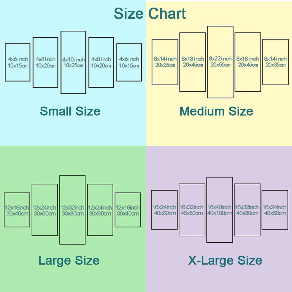 5 Pieces Wall Art Canvas Poster Sunset Ocean View Landscape Painting Living Room Decor Print Bedroom Mural Home Decoration
