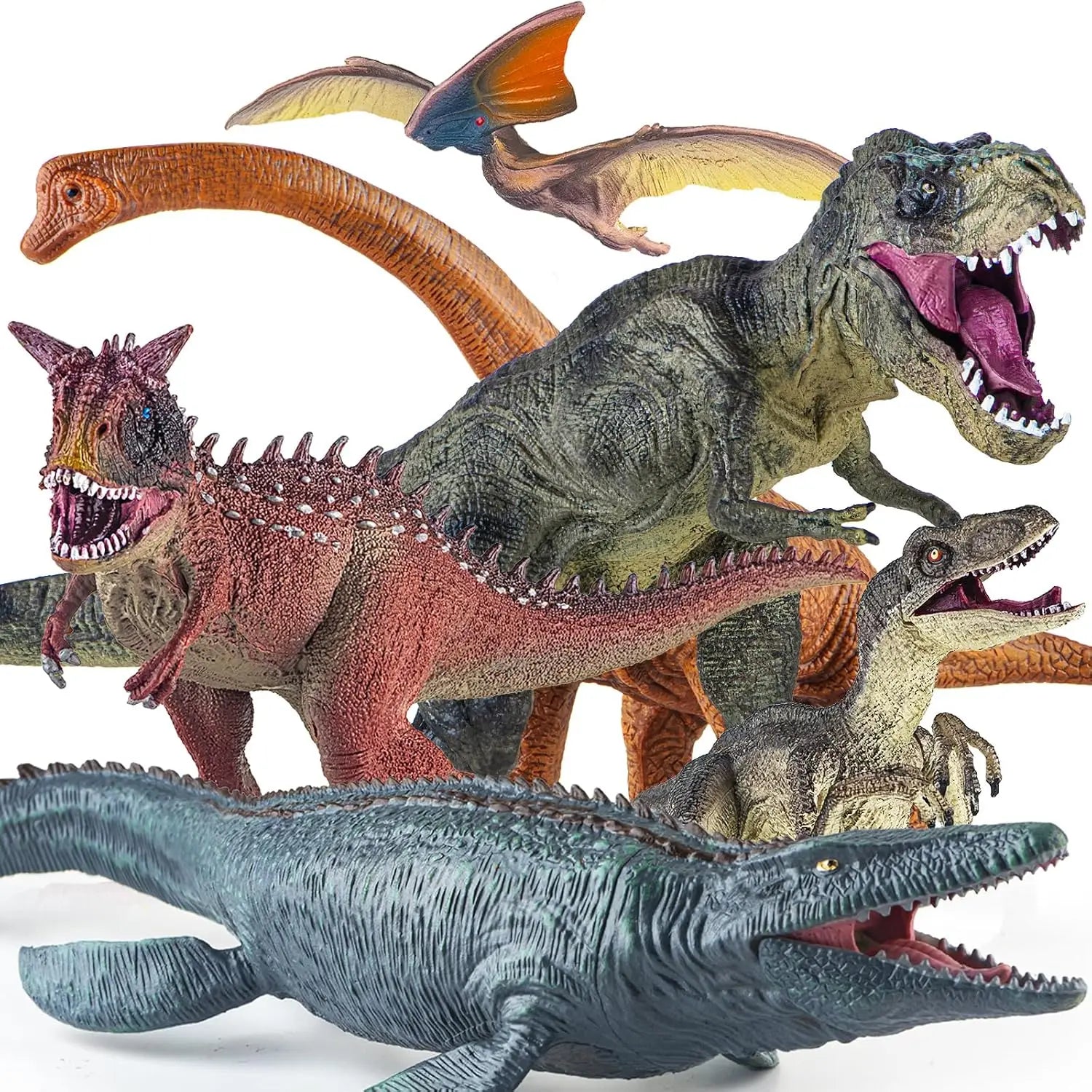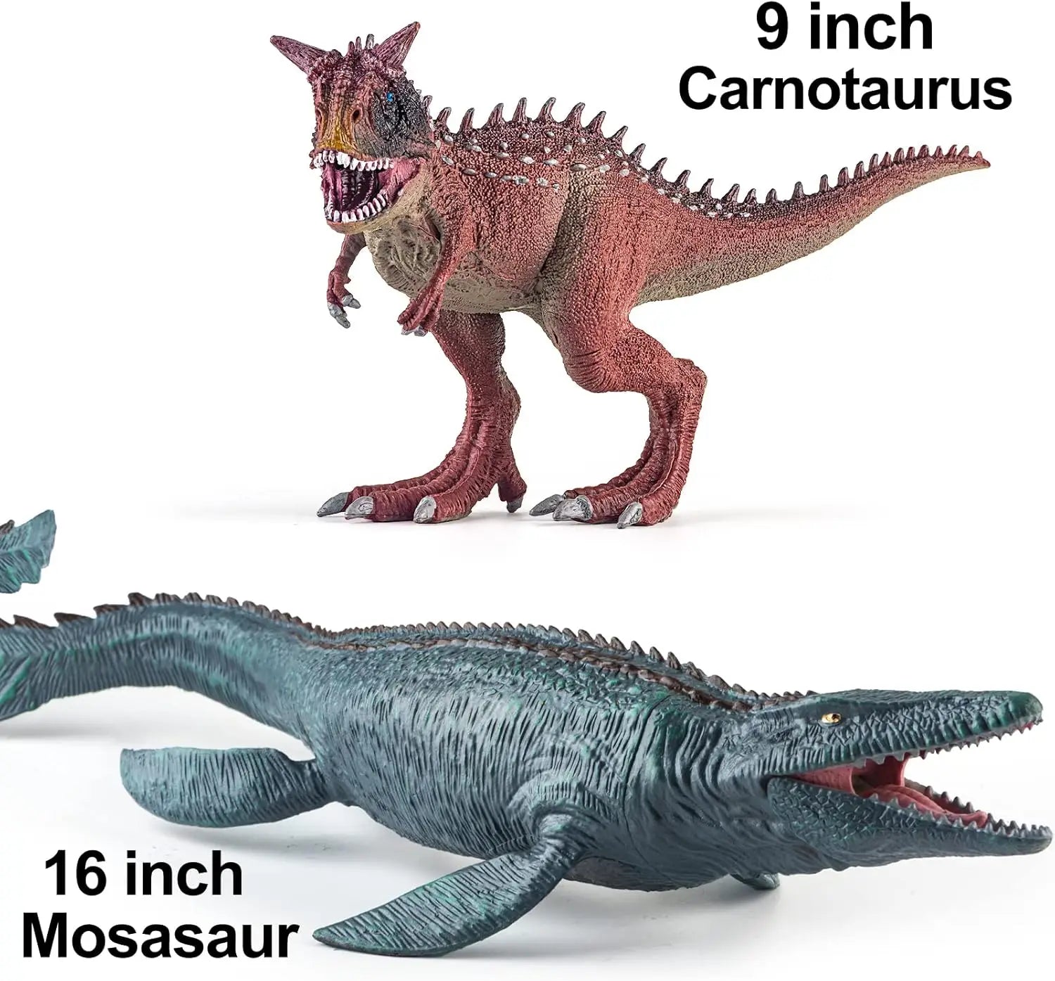 6 Pack Big Dinosaur Toys Set Realistic T Rex Carnotaurus Velociraptor Mosasaurus