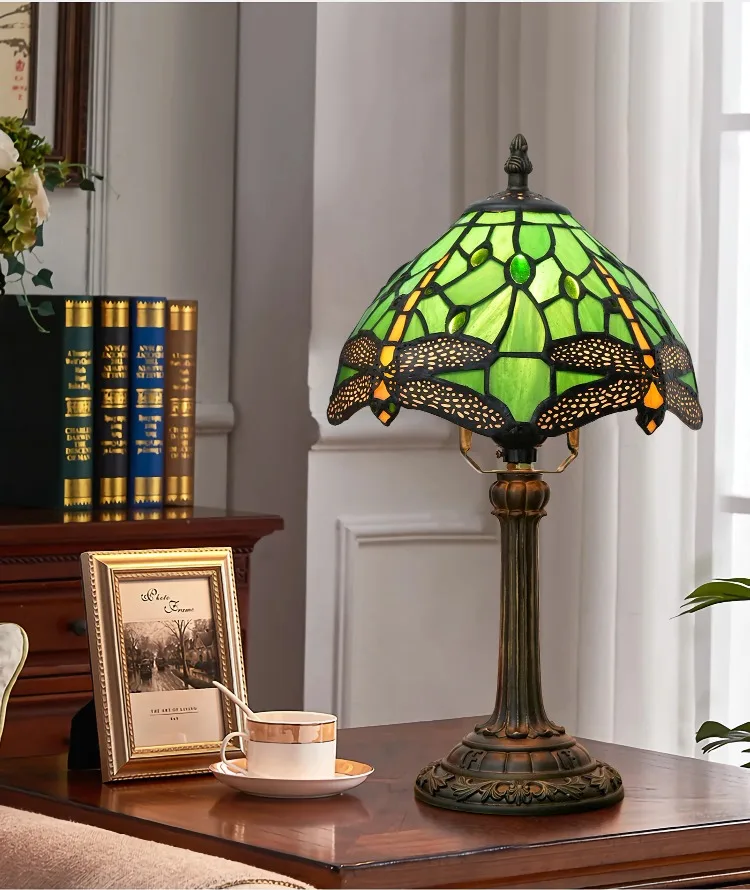 8inch 20cm Tiffany Desk Light Stained Glass Dragonfly Lampshade Bedside Table Lamp for Bedroom Living Room Lampara Mesita Noche