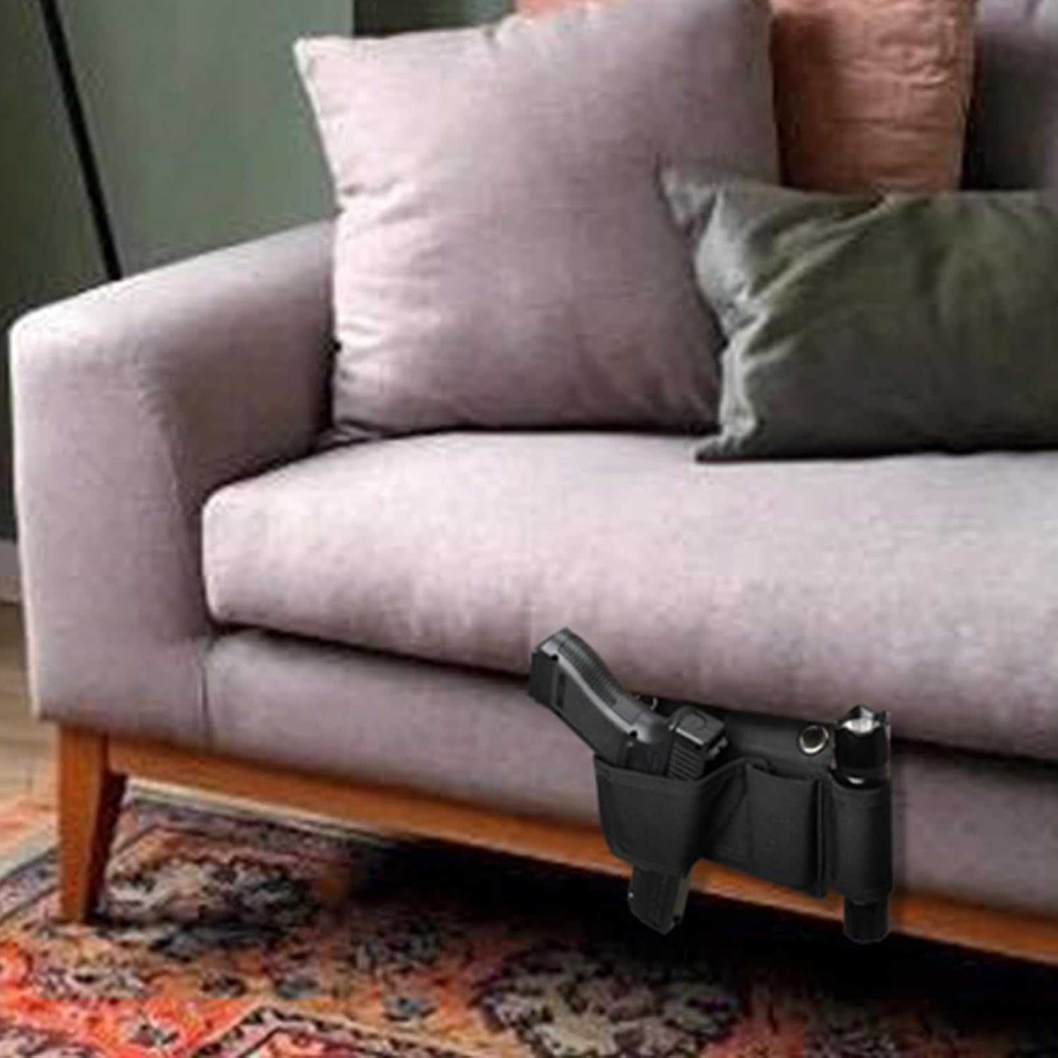 This versatile holster can be placed under a Bedding, on a car seat, desk, or in a closet, and is suitable for holding a handgun along with a flashlight and magazine. It can also be hung in a closet or mounted on a wall. Additionally, it is compatible with various types of vehicles.