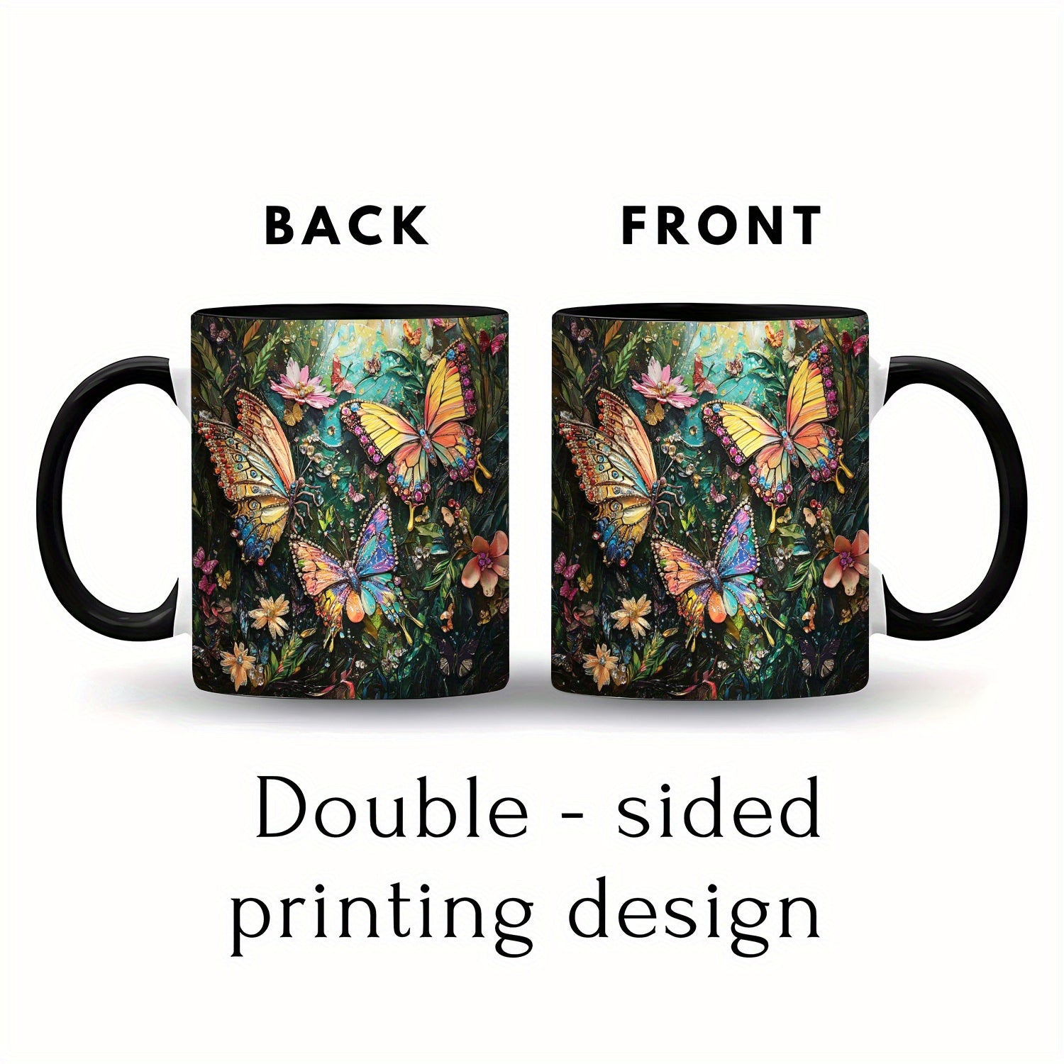 The charming butterfly and blossoms motif adds a touch of whimsy to your kitchen or office desk, making every sip feel special. With an 11-ounce capacity, it strikes the ideal balance between a robust serving and a comfortable, manageable cup.