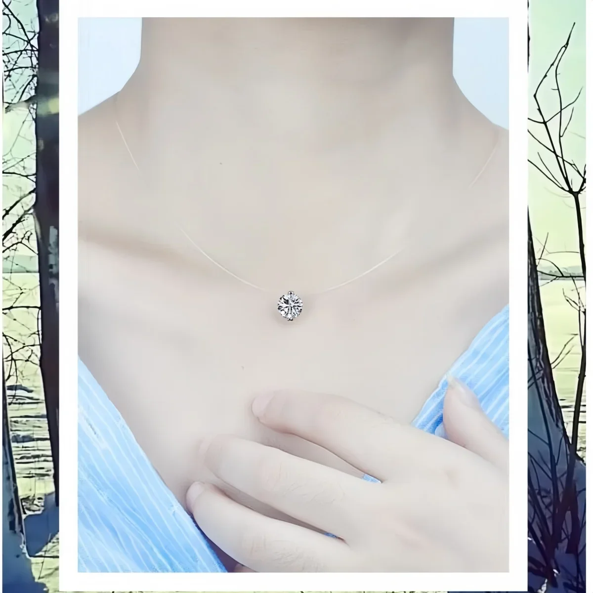 Fashion Shiny imtation Crystal Necklace Zircon Pendant Transparent Fishing Line Invisible Ladies Necklace Jewelry Clavicle Chain