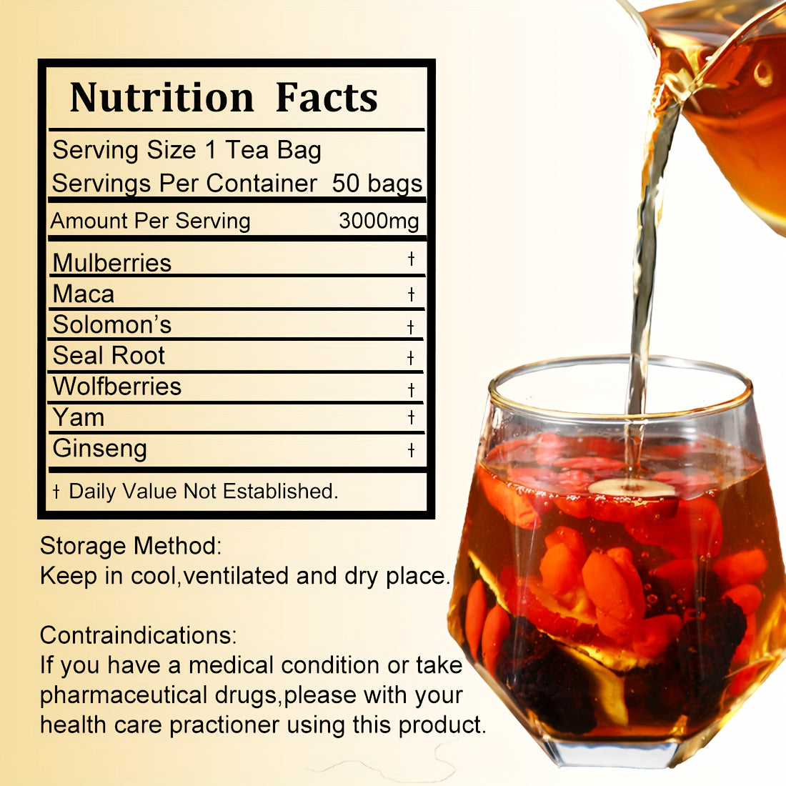 - Key ingredients: ginseng, Six Treasures blend, mulberry, and wolfberry.