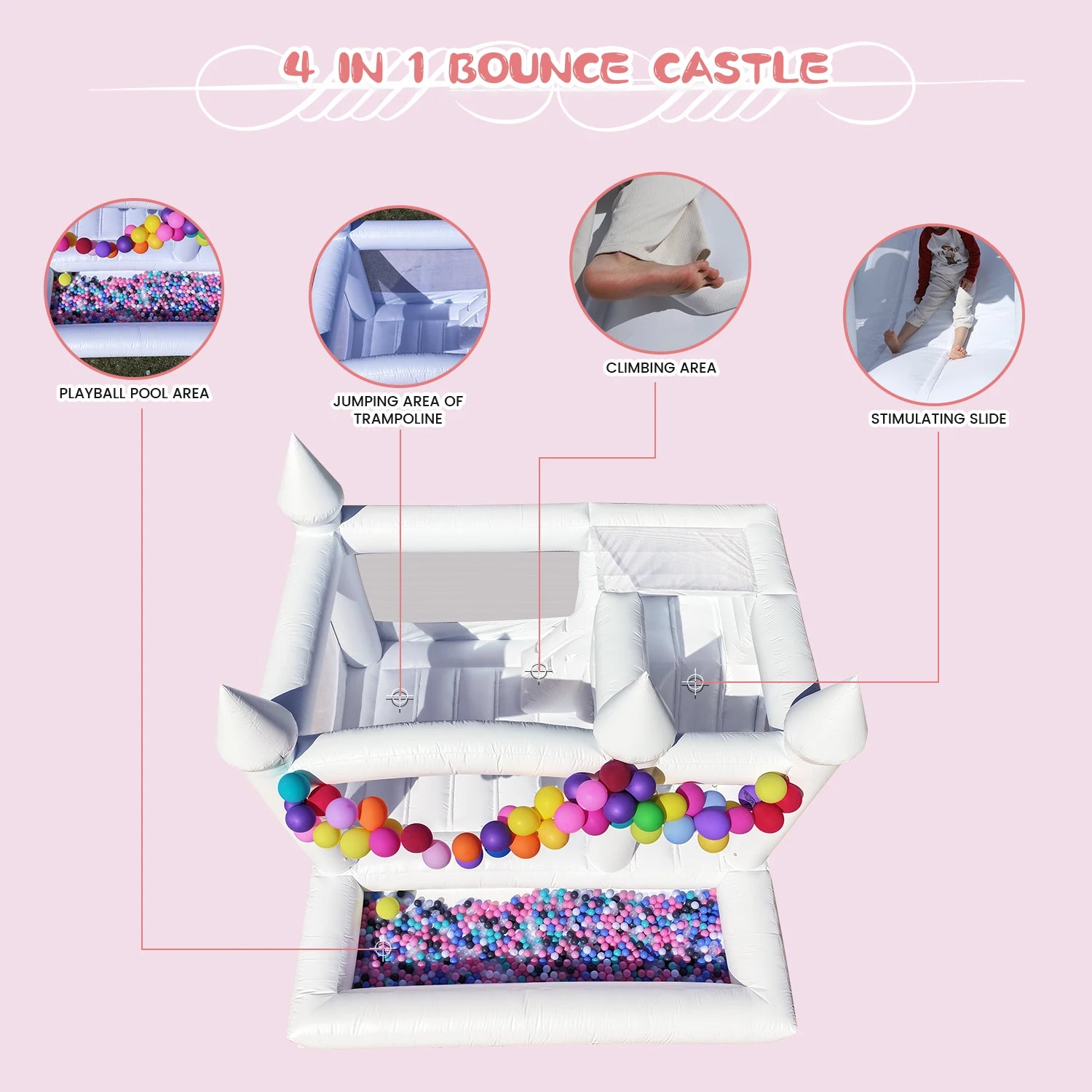 New Inflatable White Bounce House for Big Kids and Adults with Slide and Ball Pit Commercial PVC Bouncy Castle for Weddings Parties and Events
