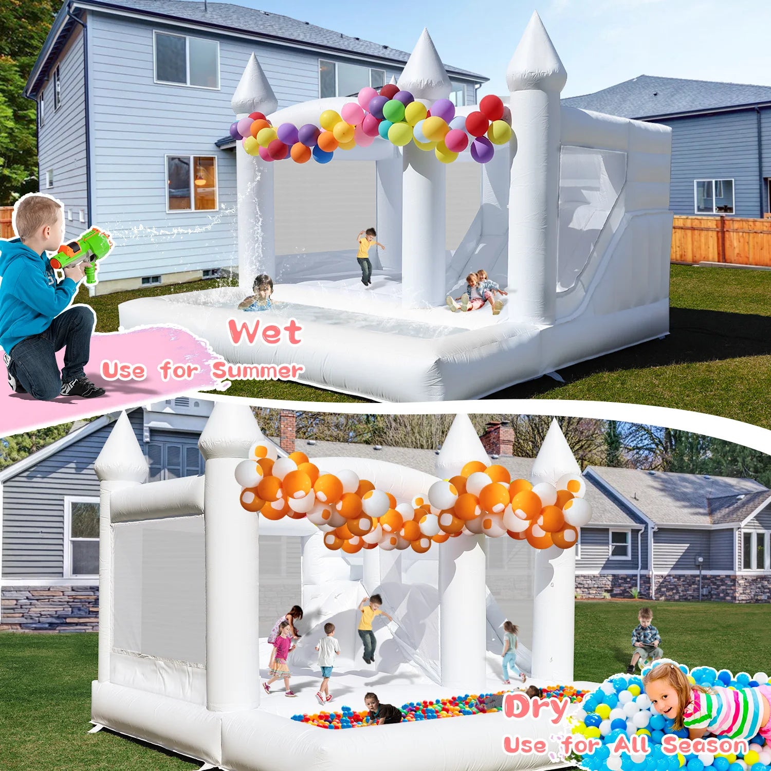 Bring excitement and fun to any event with our New Inflatable White Bounce House for Big Kids Adults with Slide & Ball Pit. Crafted from durable commercial-grade PVC, this bouncy castle offers a safe, high-quality play environment suitable for children and adults alike. Its sleek white design makes it a versatile decoration for weddings, parties, or outdoor gatherings, adding a touch of elegance and fun.