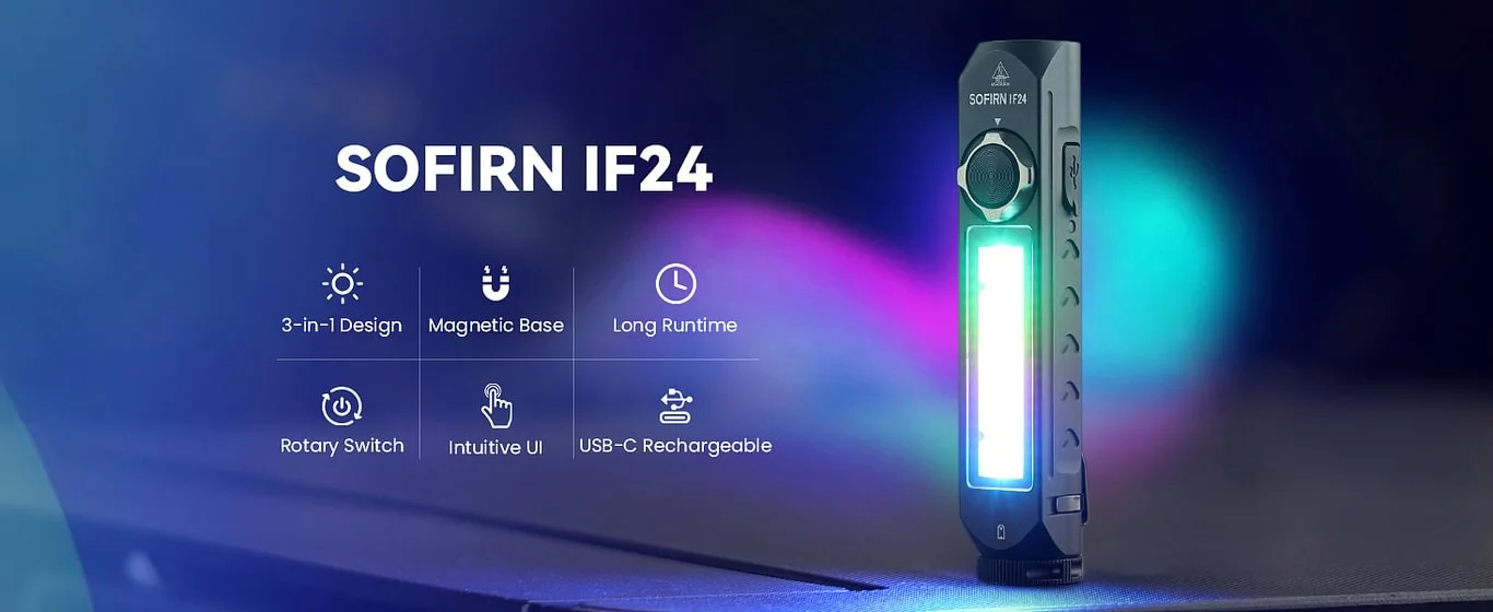 Sofirn IF24 RGB Light SST40 2000lm Powerful LED Flashlight 5V 2A 18650 USB C Rechargeable Torch IP66 Waterproof with Magnetic