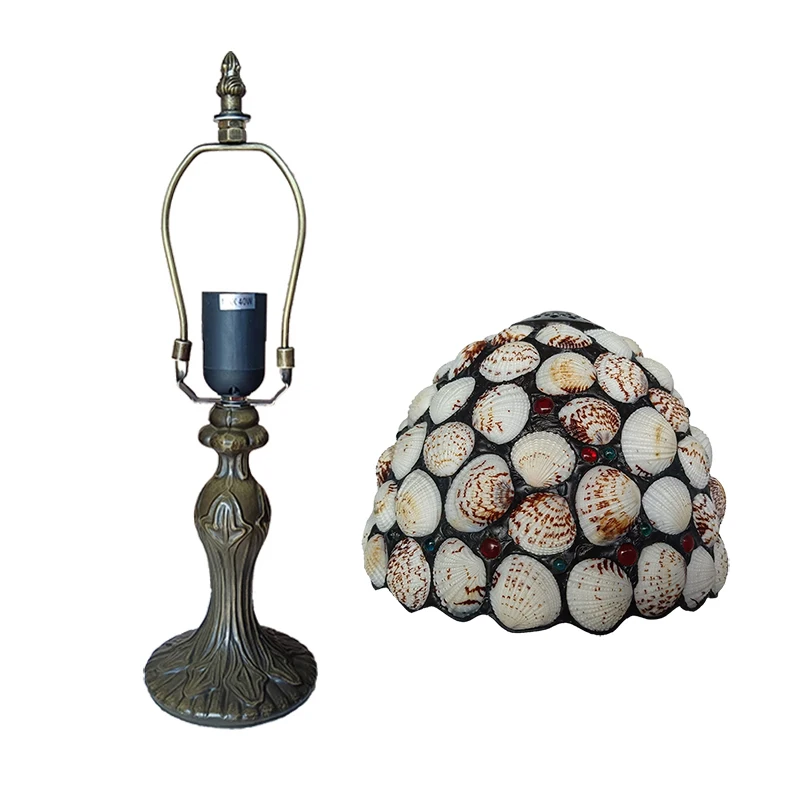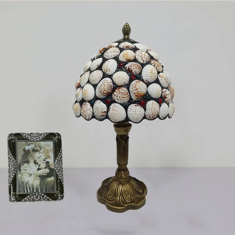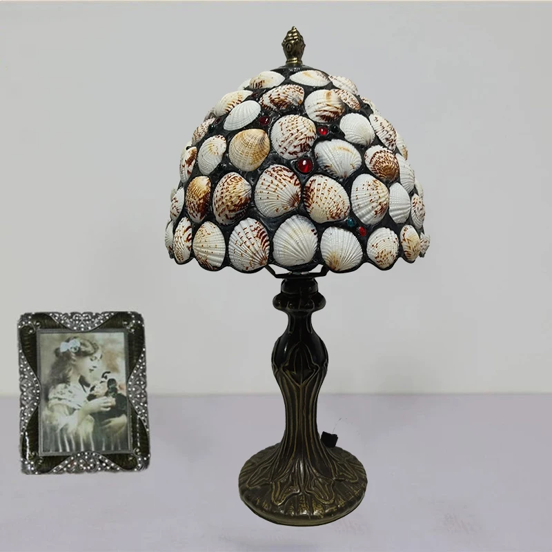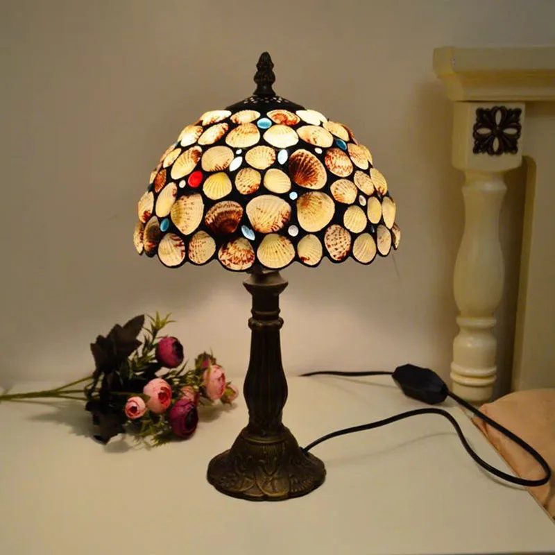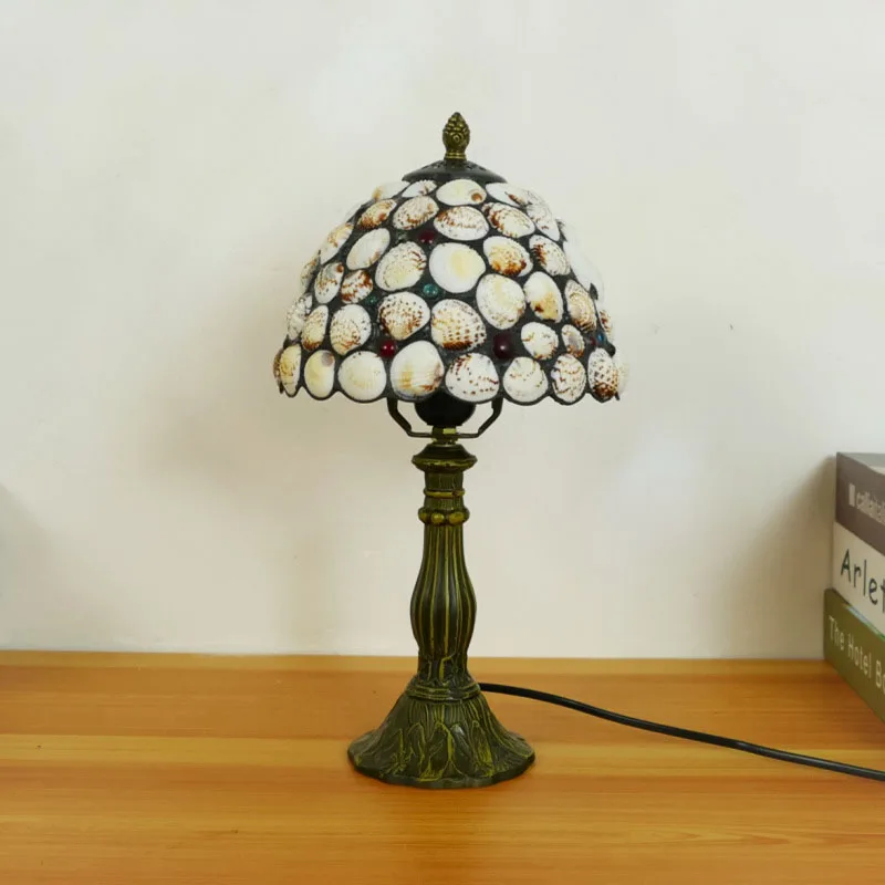 WOERFU 20cm Handmade Tiffany Table Lamp Shell Lampshade Decorative 1E27 Dimmable Bedside Lamp for Reading And Relaxation